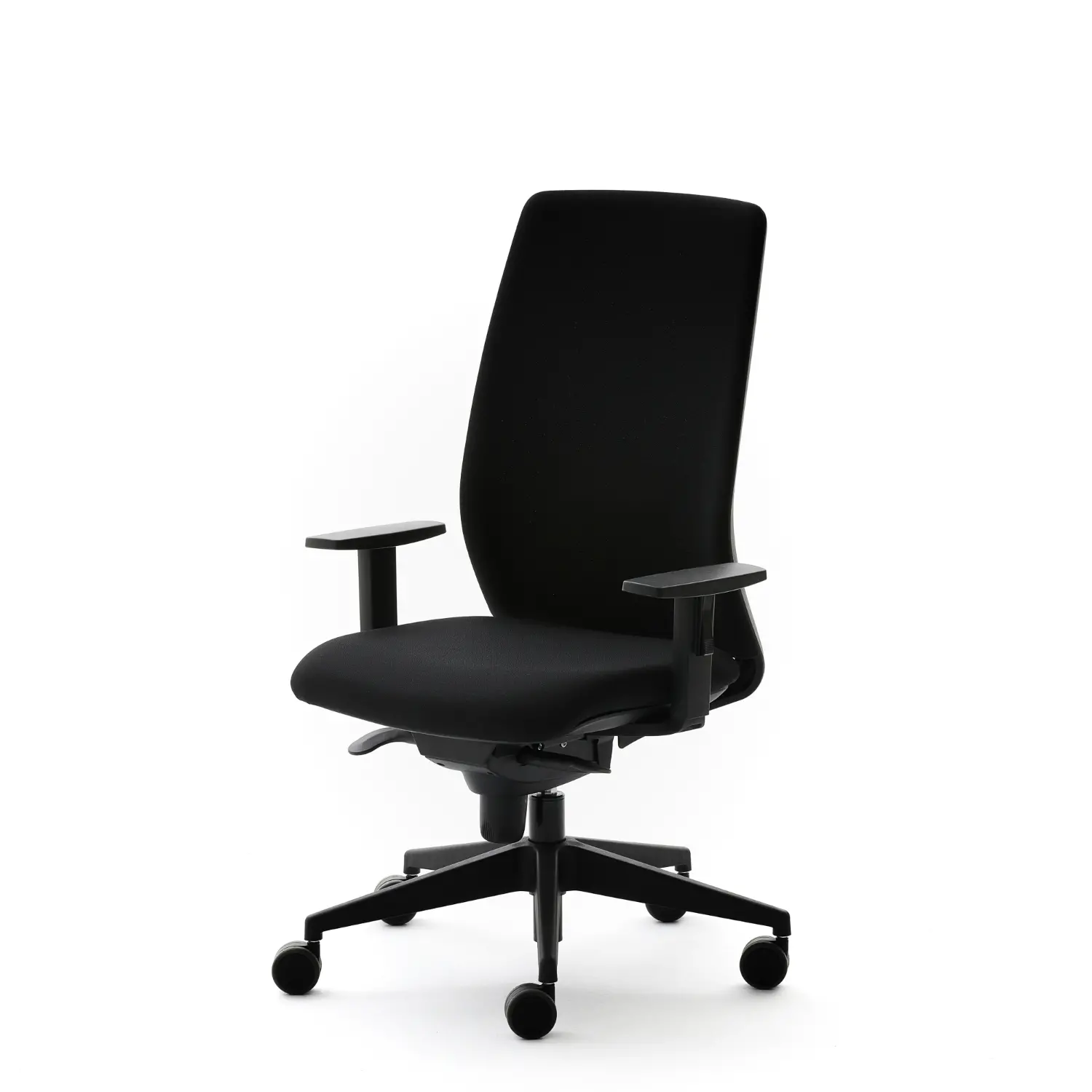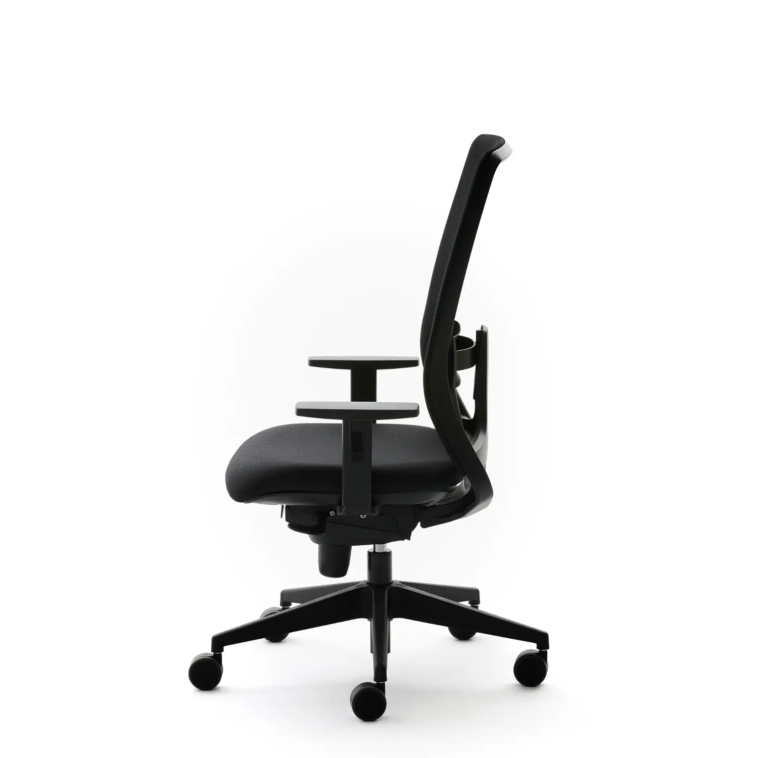 Silla operativa con ruedas de 65mm autofrenadas, mecanismo Sincro 5p con trasla, respaldo de malla, tensor lumbar flexible