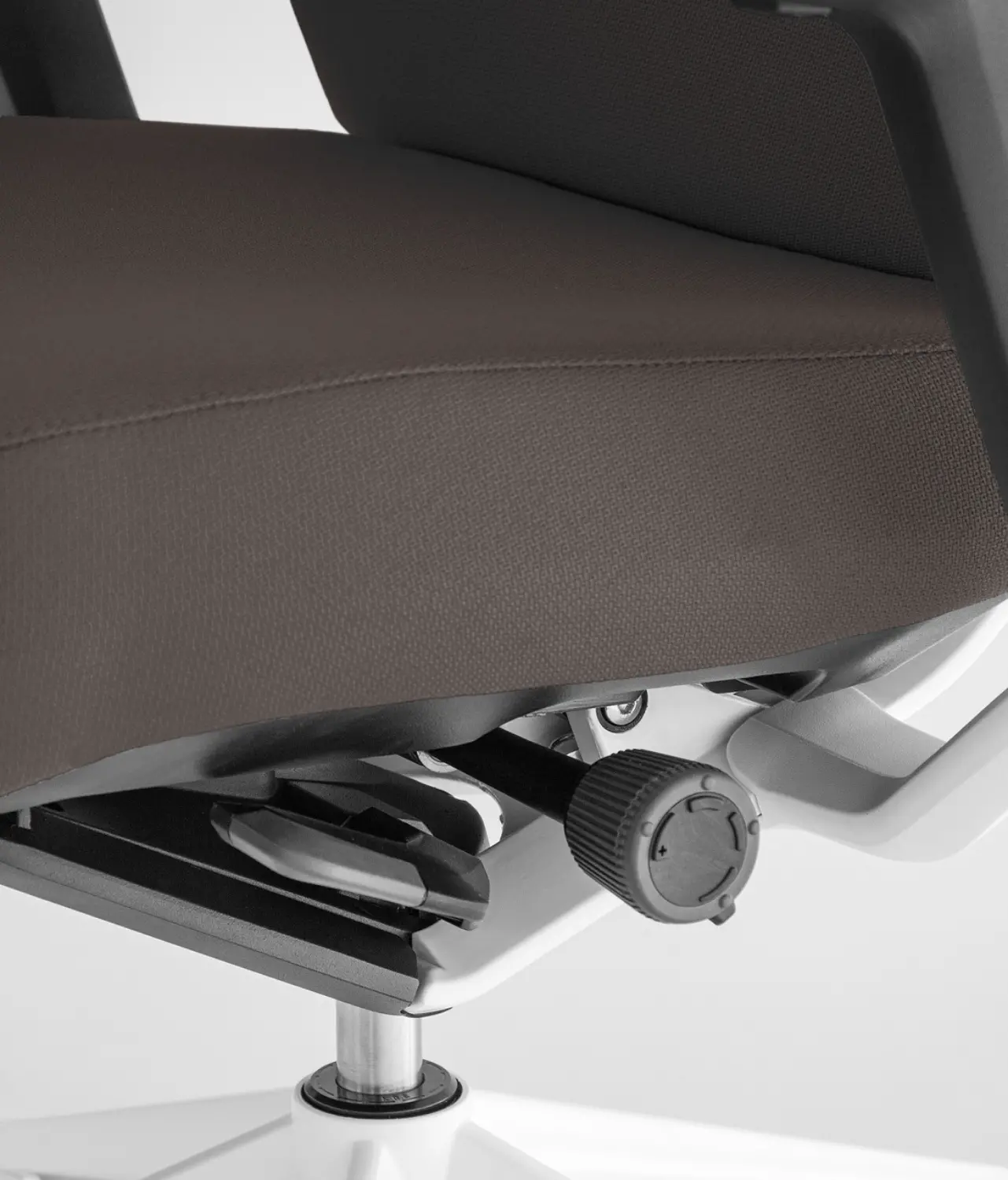 Silla de oficina TNK Flex marrón con base de aluminio blanca
